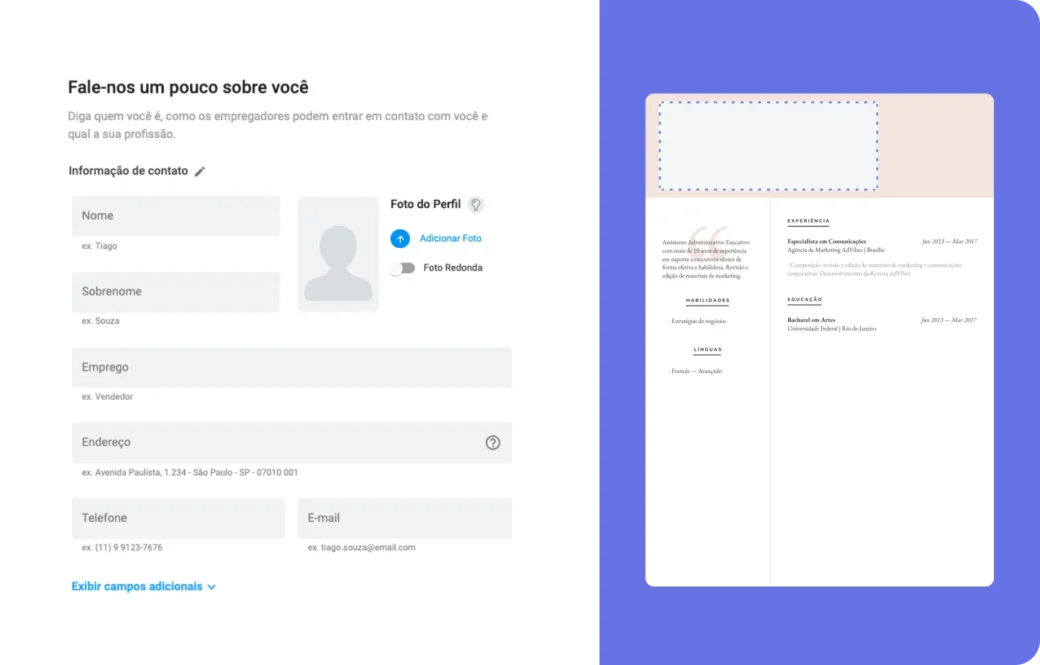 Nossos recursos de IA também suportam a inclusão de sua foto, avaliando como ela pode complementar melhor o seu currículo.