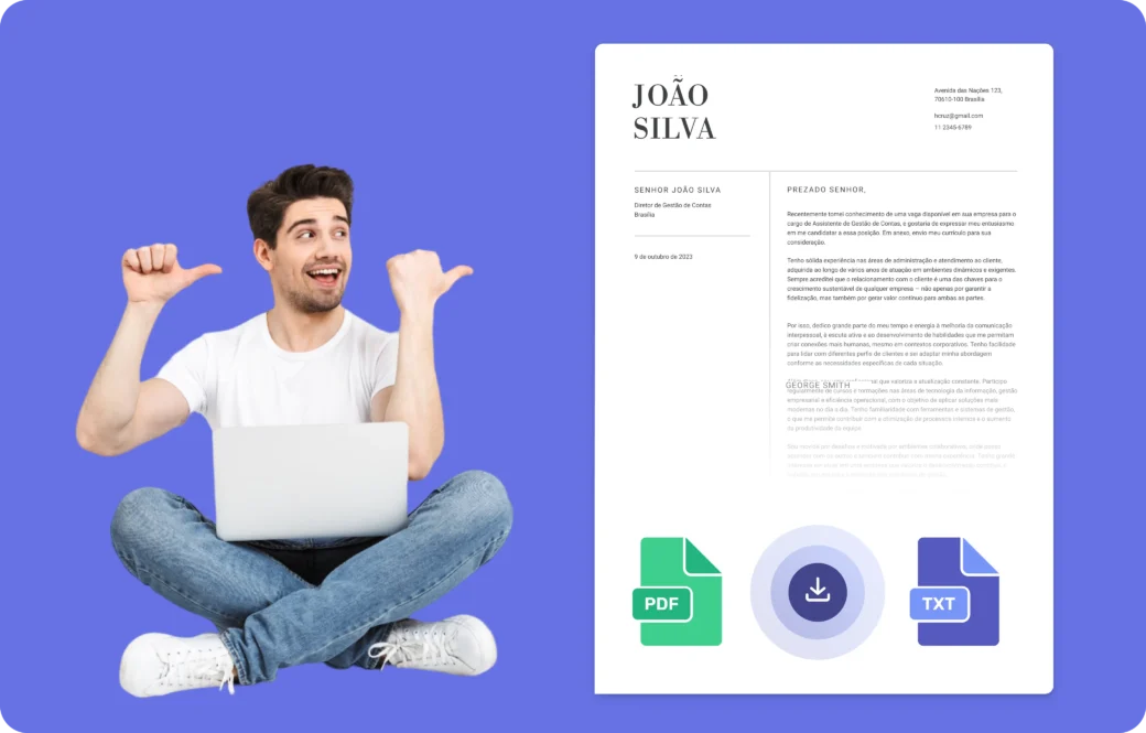 Faça o download no formato desejado e sinta-se confiante para enviar sua carta de apresentação junto com o seu currículo.