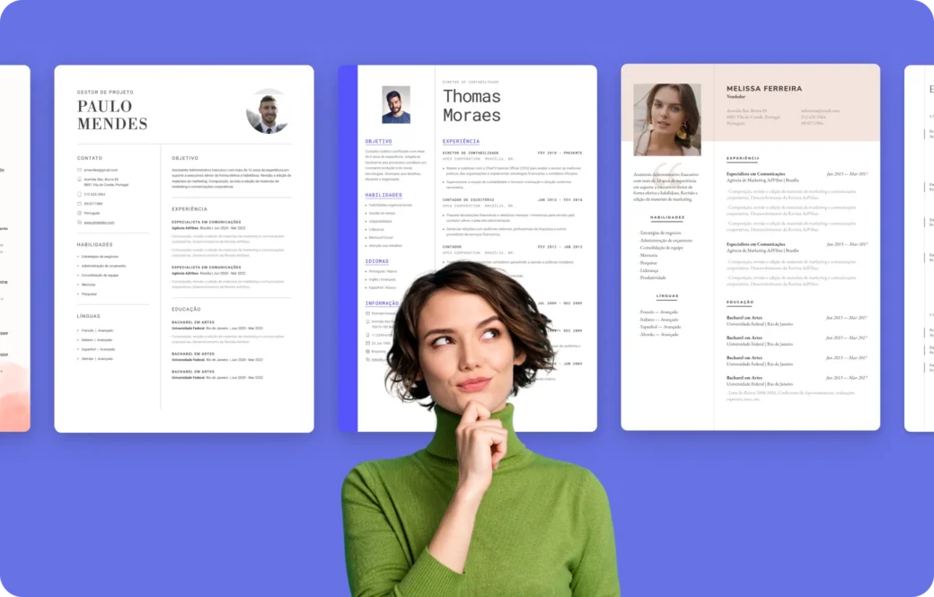 Impressione recrutadores e contratantes com nossos modelos de currículo profissional. Aprimore seu currículo com IA e consiga o emprego dos seus sonhos.